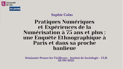 Sophie COLAS a mené une recherche doctorale entre 2020 et 2022 auprès de personnes âgées de plus de 75 ans, peu ou pas connectées, résidant à Paris et dans plusieurs communes limitrophes. Sa recherche porte précisément sur l'expérience vécue de la numérisation.