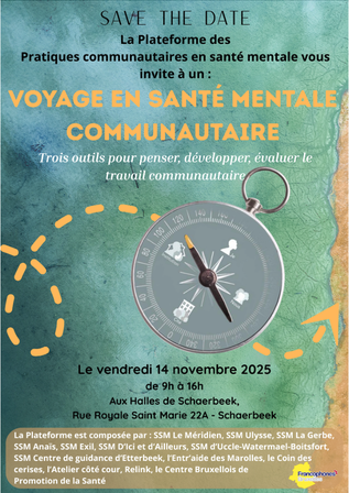 Le 14 novembre 2025, la Plateforme des pratiques communautaires en santé mentale organise à Schaerbeek un Voyage en santé mentale communautaire : Trois outils pour penser, développer, évaluer le travail communautaire.