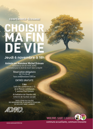 Le jeudi 6 novembre 2025, Michel Driesen, bénévole au sein de l'Association pour le droit de mourir dans la dignité, anime la conférence-échange Choisir ma fin de vie.