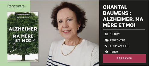 Chantal Bauwens, autrice du livre Alzheimer, ma mère et moi (paru aux éditions de l'arbre), sera au théâtre le Public le jeudi 16 octobre 2025, aux côtés de Charlie Dupont et Tania Garbarski, les deux interprètes de la pièce Oublie-moi, actuellement à l'affiche.