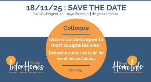 L'asbl Infor-Home Info vous fixe un rendez-vous le 18 novembre 2025 à Bruxelles pour son colloque Quand accompagner la mort sculpte les vies : réflexion autour de la fin de vie et de ses tabous.