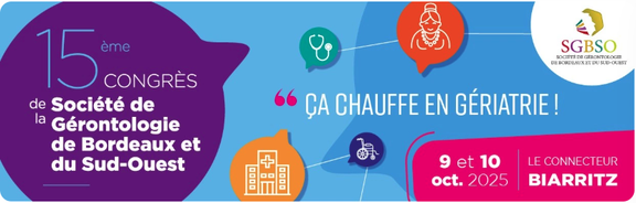Les 9 et 10 octobre 2025, la Société de Gérontologie de Bordeaux et du Sud Ouest organise son 15è Congrès durant laquelle plusieurs thématiques seront abordées, telles que : la gravité et la fréquence des infections chez la personne âgée, les différents aspects de la pathologie infectieuse : antibiothérapie sous cutanée, gestion des infections en EHPAD, prélèvements microbiologiques à bon escient, la gestion des fausses routes, de la gestion de l’épidémie et de la place de l’antibiothérapie en fin de vie, ...